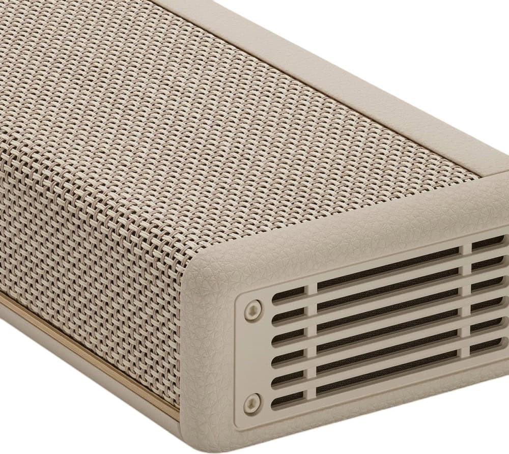 Стильный компактный саундбар с поддержкой Dolby Atmos и DTS:X, который обеспечивает мощный трёхмерный звук для фильмов и музыки. Семь усилителей класса D (56 Вт), Wi-Fi (AirPlay 2, Spotify Connect, TIDAL), Bluetooth Auracast™, HDMI 2.1 eARC и аналоговые входы делают его универсальным центром развлечений. Приложение Marshall открывает доступ к эквалайзеру и режимам (Movie, Music, Night, Voice), а ретро-дизайн с фирменной решёткой и PU-кожей гармонично впишется в любой интерьер. Саундбар можно ставить на тумбу или крепить на стену, а благодаря ремонтопригодной конструкции он прослужит дольше.
