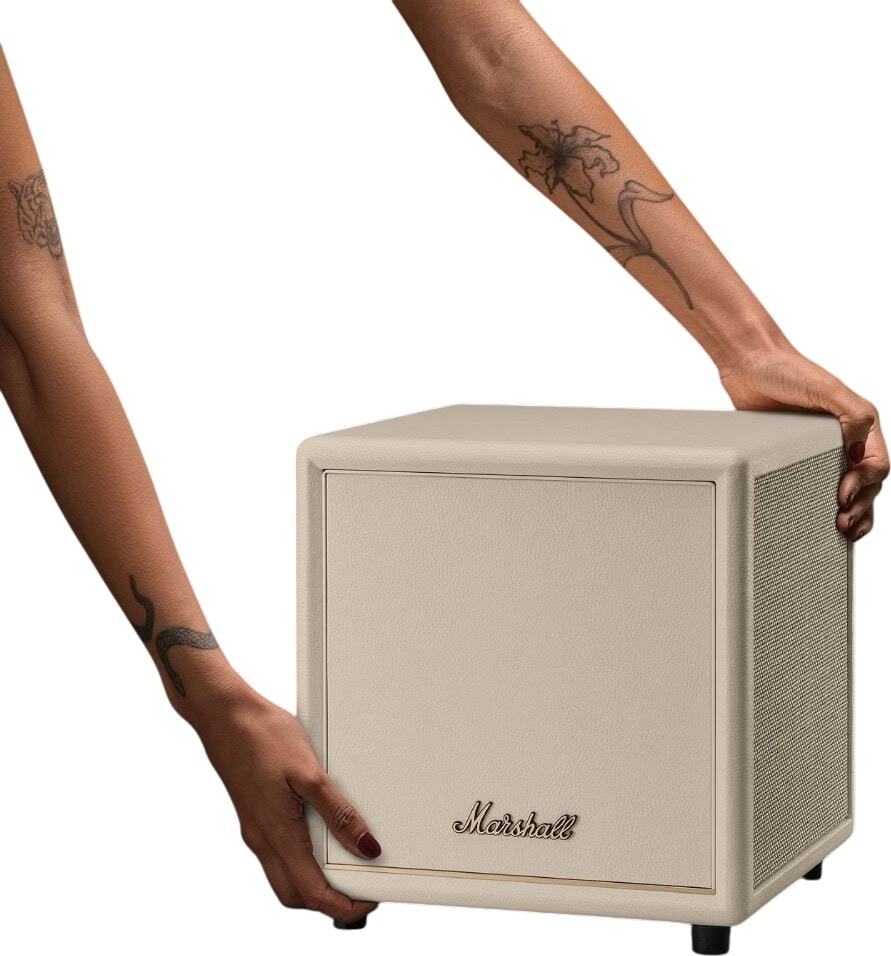 Мощный беспроводной сабвуфер с насыщенным басом, который оживляет домашний кинотеатр. Он оснащён двумя 5,25-дюймовыми низкочастотными динамиками, двумя усилителями класса D (по 120 Вт каждый) и достигает пиковых 236 Вт мощности. Работает по Bluetooth LE Audio, что упрощает установку без лишних кабелей, и совместим с саундбарами Heston для создания полноформатного звучания. Звуковые настройки можно регулировать через приложение Marshall.