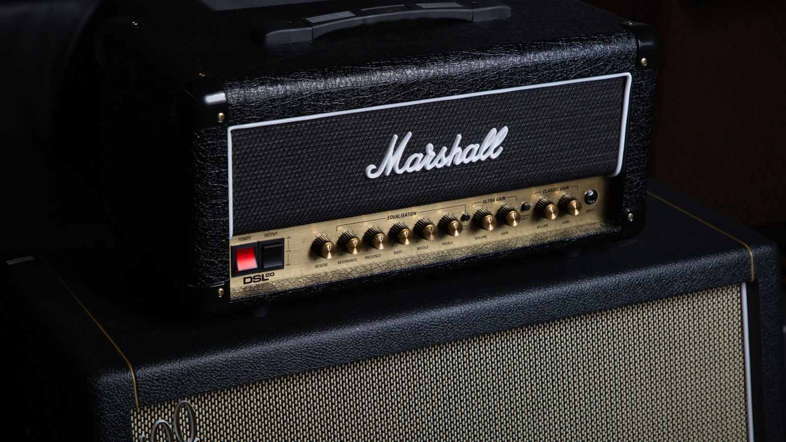 Портативный гитарный усилитель Marshall DSL20H хорошо подходит для использования как на репетициях, так и в студиях звукозаписи. Специально для игры на небольших площадках или студийной записи предусмотрена возможность снижения мощности 20 Вт до 10 Вт. Архитектура предусилителя построена на трех лампах ECC83, а усилителя мощности на двух EL34. Этот двухканальный усилитель (Classic Gain и Ultra gain) обладает широким функционалом, включая эффекты ревера, трехполосный эквалайзер (treble, middle, bass), presence и резонанс. Предусмотрены петля эффектов (посыл/возврат). На задней панели располагаются три разъема под четвертьдюймовый джэк для подключения динамиков (нагрузка 16/8 Ом) и эмулированный линейный выход 3.5-мм mini-jack, а также секция входов в виде одного инструментального под четвертьдюймовый джэк, AUX с гнездом 3.5-мм mini-jack и разъем для подключения педали. В комплект поставки входят кабель питания IEC и футсвич PEDL-90012.