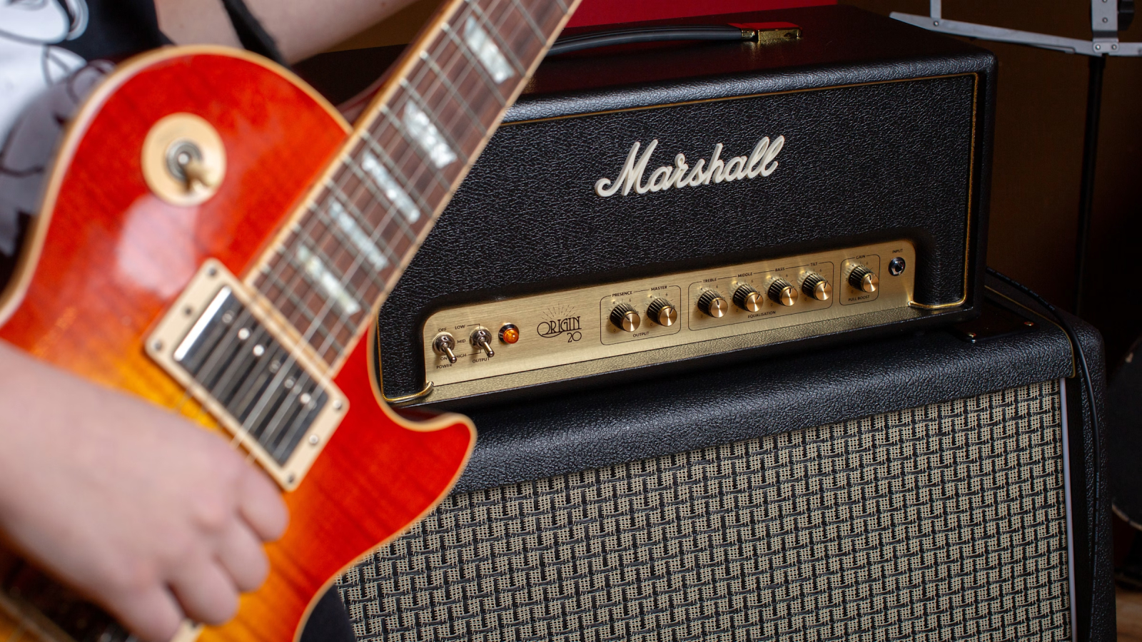 ORIGIN20H производства компании Marshall представляет собой гитарный ламповый усилитель типа «голова». Секция предусиления содержит три лампы 12AX7 (ECC83). В оконечном усилителе установлены две лампы модели EL34. Раздельные регуляторы усиления (Gain) и громкости (Master) позволяют настроить звучание с сильным перегрузом, сохранив при этом небольшой уровень громкости. На панели управления также располагаются ручки регулировки функции Presence и Tilt. Максимальное значение выходной мощности усилителя составляет 20 Вт, а встроенный аттенюатор позволяет понизить это значение до 3 или 0.5 Вт без негативного влияния на качество звука. Для подключения внешнего кабинета присутствуют три выходных разъема: два с сопротивлением в 8 Ом и один с импедансом в 16 Ом. Конструкция усилителя также оснащена прямым выходом с предусилителя на разъеме 1/4 Jack TS, что позволяет подключать усилитель напрямую в микшер или аудиоинтерфейс. Для подключения внешнего FX процессора также используются два разъема 1/4 Jack TS (Send и Return). В комплекте поставляется двухкнопочный футсвич PEDL-90016.